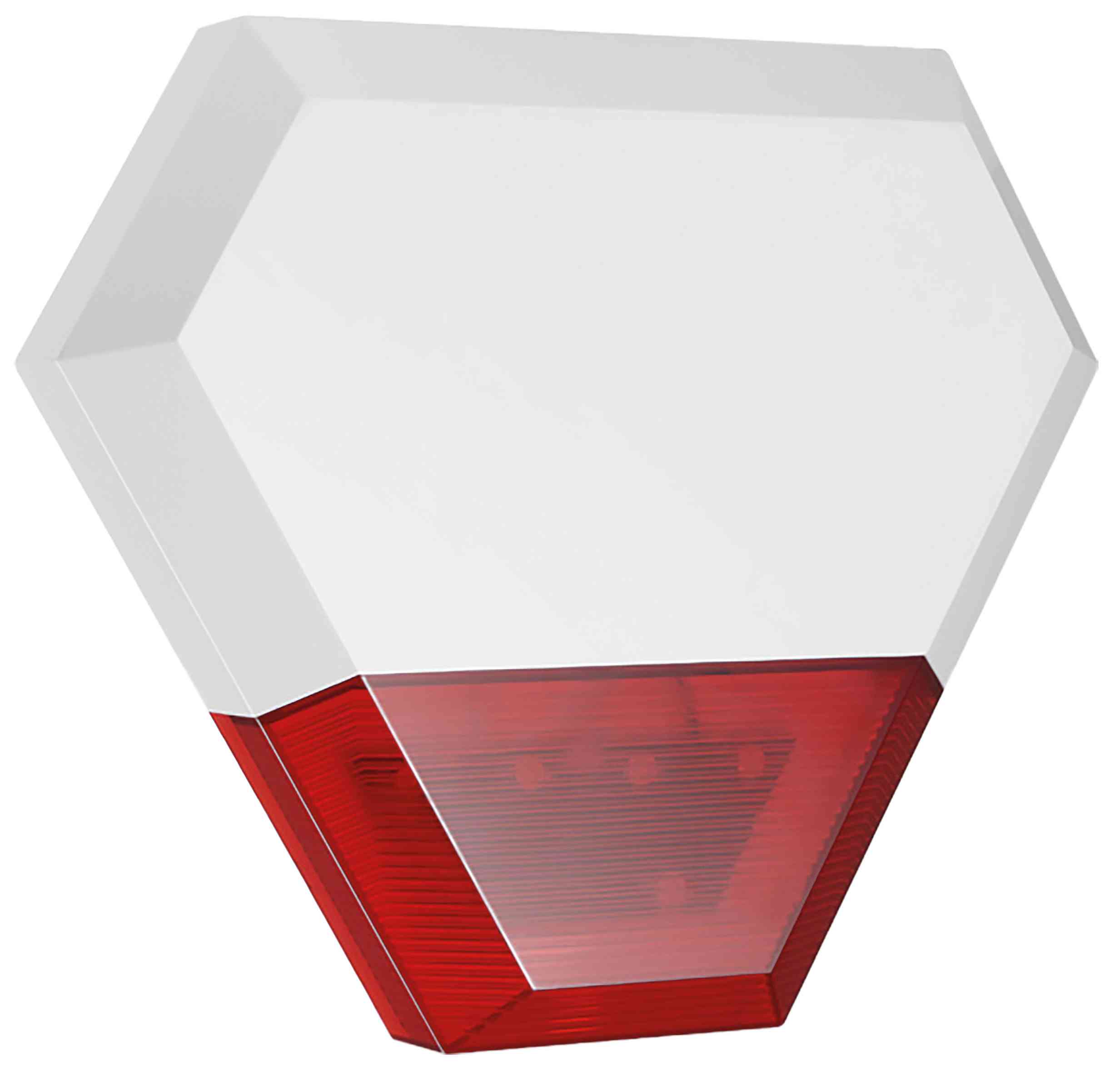 ad alta potenza (max 115 dB) con luce lampeggiante dotata di protezione anti-manomissione. Trasmissione Wireless. Alimentazione DC 12V. Batteria di backup 3,/2.200 mAh al litio.