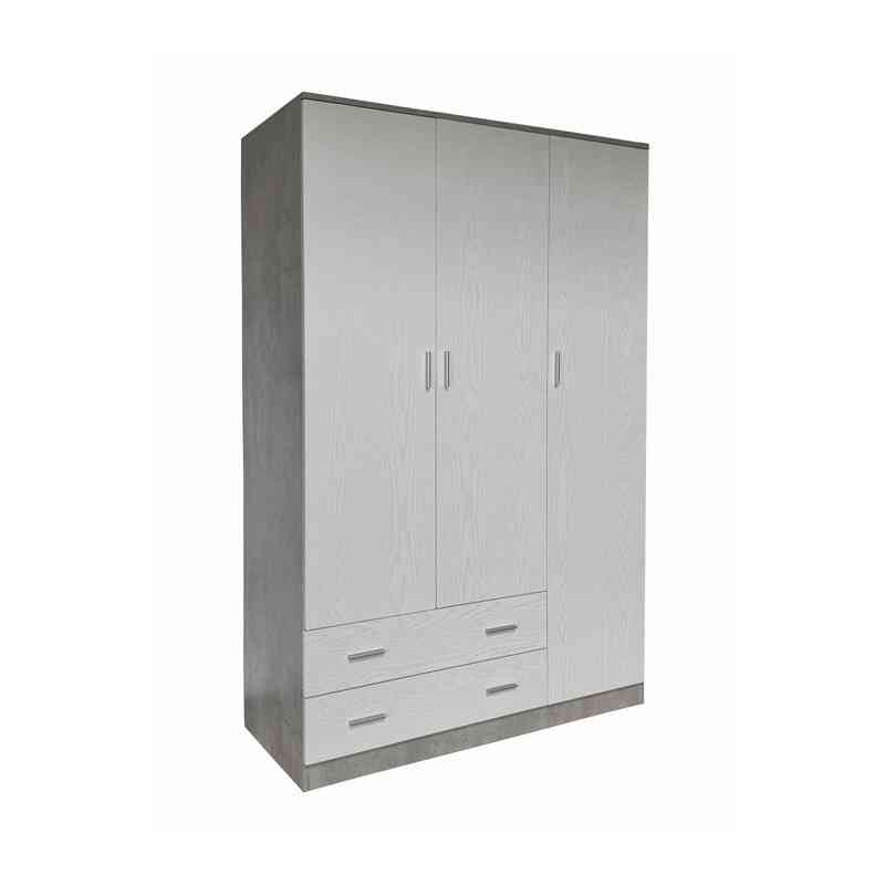 Mod. Space a 3 ante e 2 cassetti in MDF+PU per pannello del fondo, bordi in PVC. Pannello spessore 15 mm. Dimensioni 120X52X190 cm. Colore cemento/biancoE1 15 MM PB+PU, 2.5MM