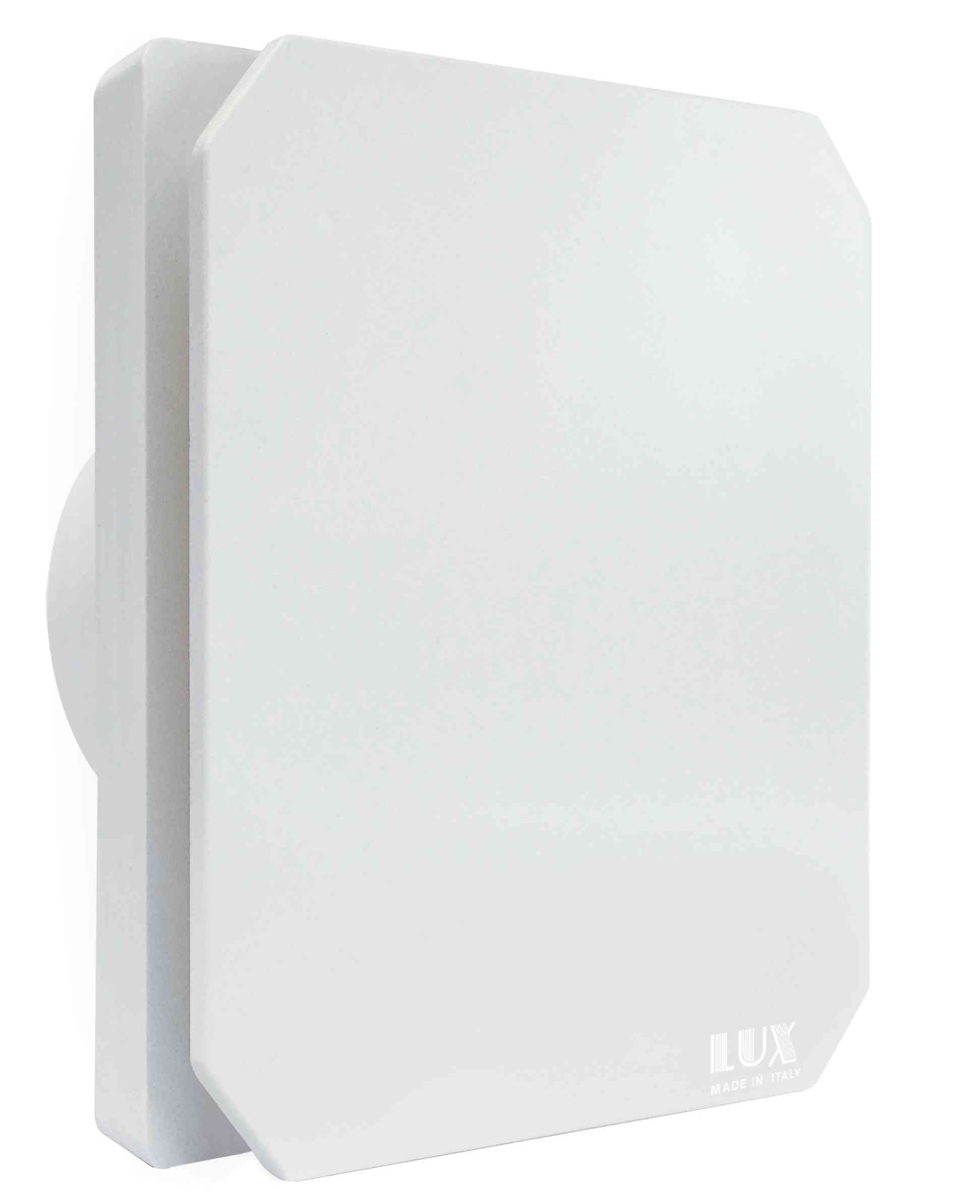 Mod. LUX317 in materiale termoplastico. Applicazione a parete. Apertura e chiusura automatica. Timer regolabile da 5 minuti a max 30 minuti. Foro uscita aria