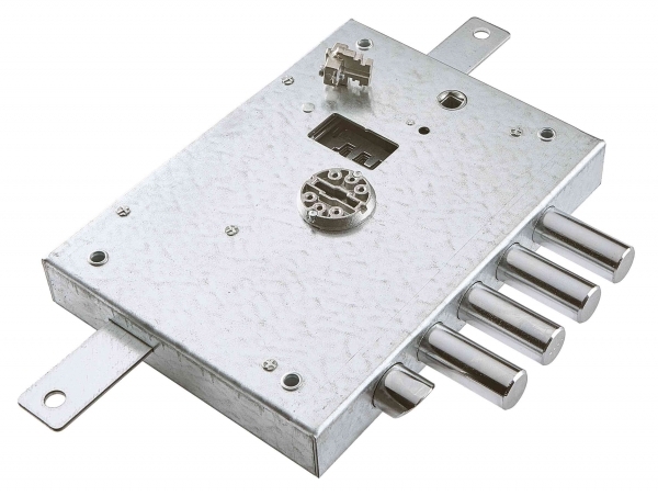 Art. 7111-2 DE chiusura triplice da applicare, con scrocco e 4 catenacci. Scatola mm 152x206 Entrata 70 mm Art. 7111-2 DE mano Dx Confezione in busta blocchetto non sigillato e corredato di tre chiavi.