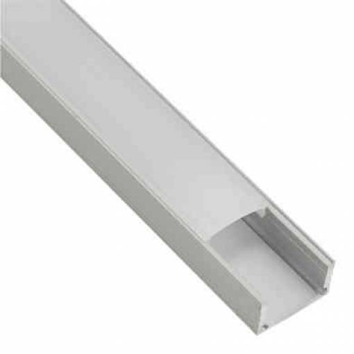 Beghelli profilo per strip led plafone largo. Il kit comprende un profilo di 2 metri, 2 testate di chiusura, 2 staffe per installazione e un diffusore opalino e uno trasparente. Altezza 9 x 22 mm di larghezza.