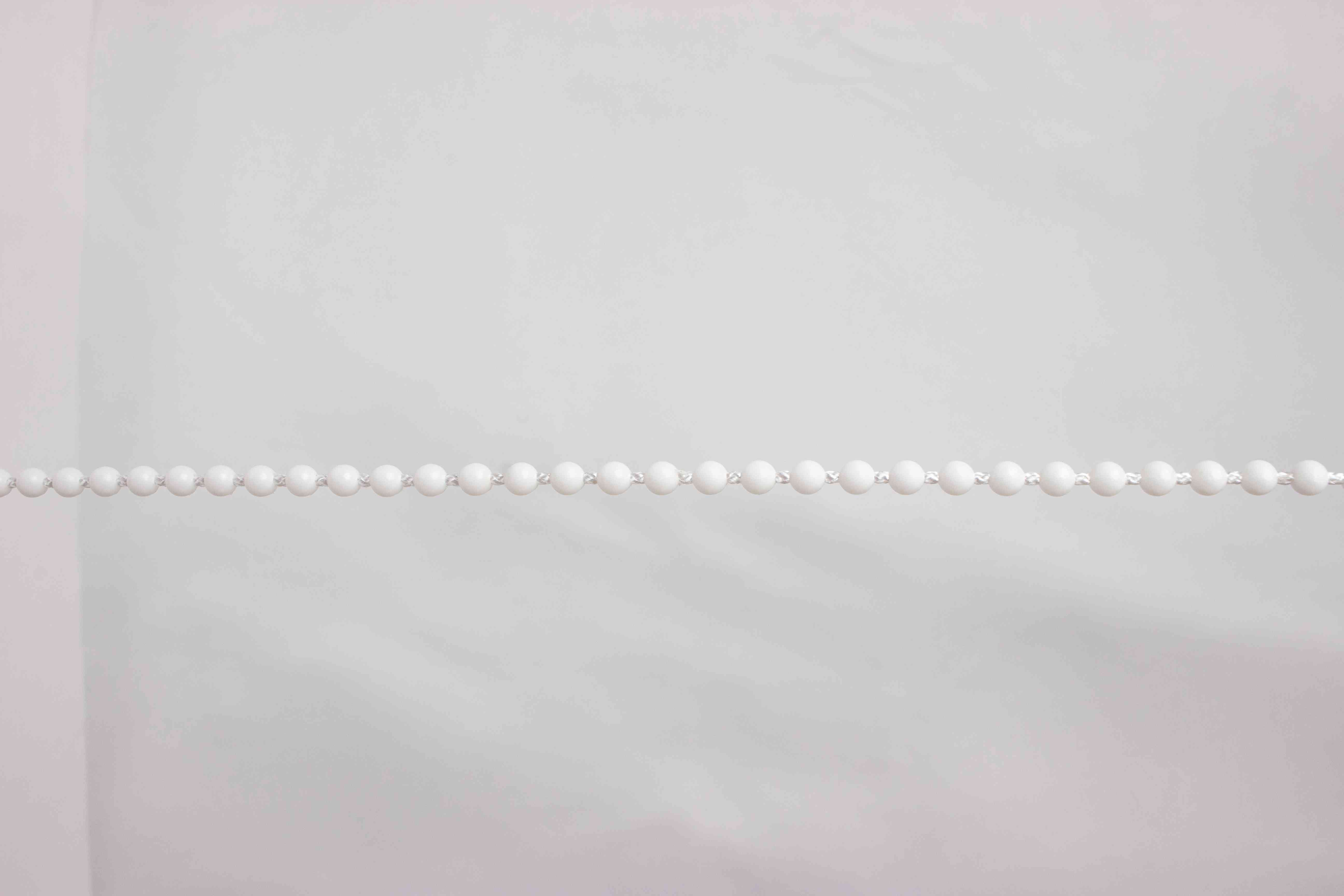 in plastica pretagliata. Diametro perlina 4,5 mm. Lunghezza catena 2,5 m. Colore bianco.