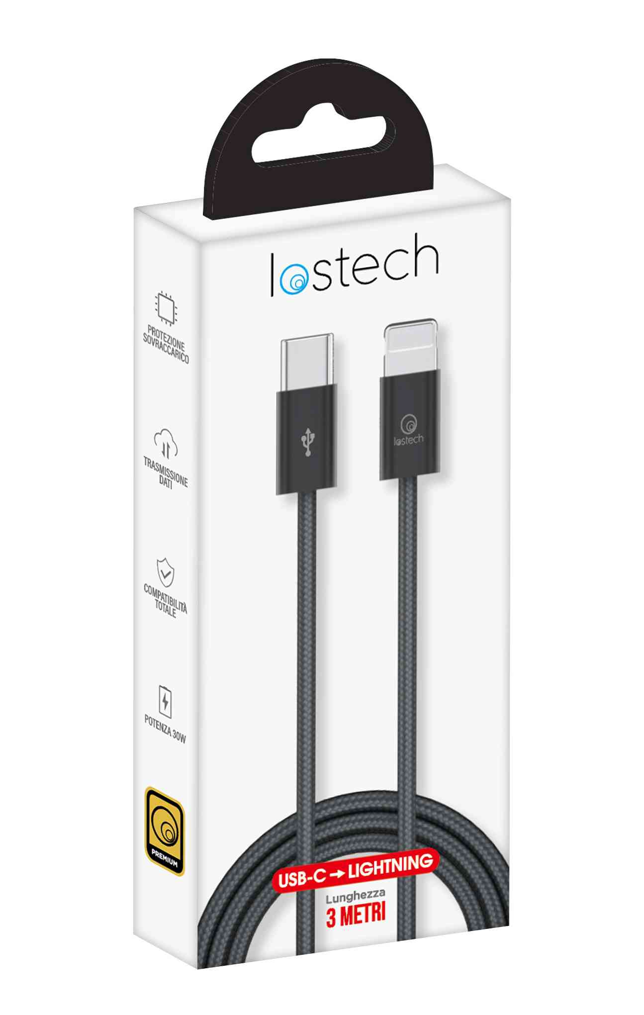1,0 PZ Di CAVO USB C / LIGHTNING 3M NERO 30W