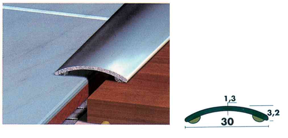 in alluminio anodizzato. Autoadesivo. Per pavimenti a differente dilatazione. Larghezza 30 mm Lunghezza cm 200