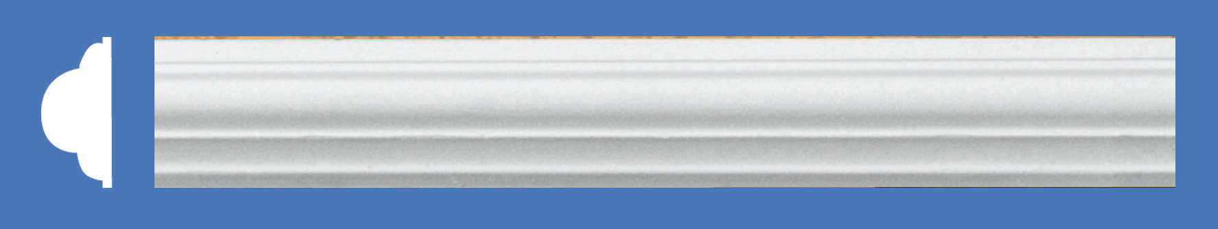 Mod. C03412 cornice in gesso. Rinforzato in fibra di vetro. Sezione cm 1,6x3,4 Lunghezza 150 cm