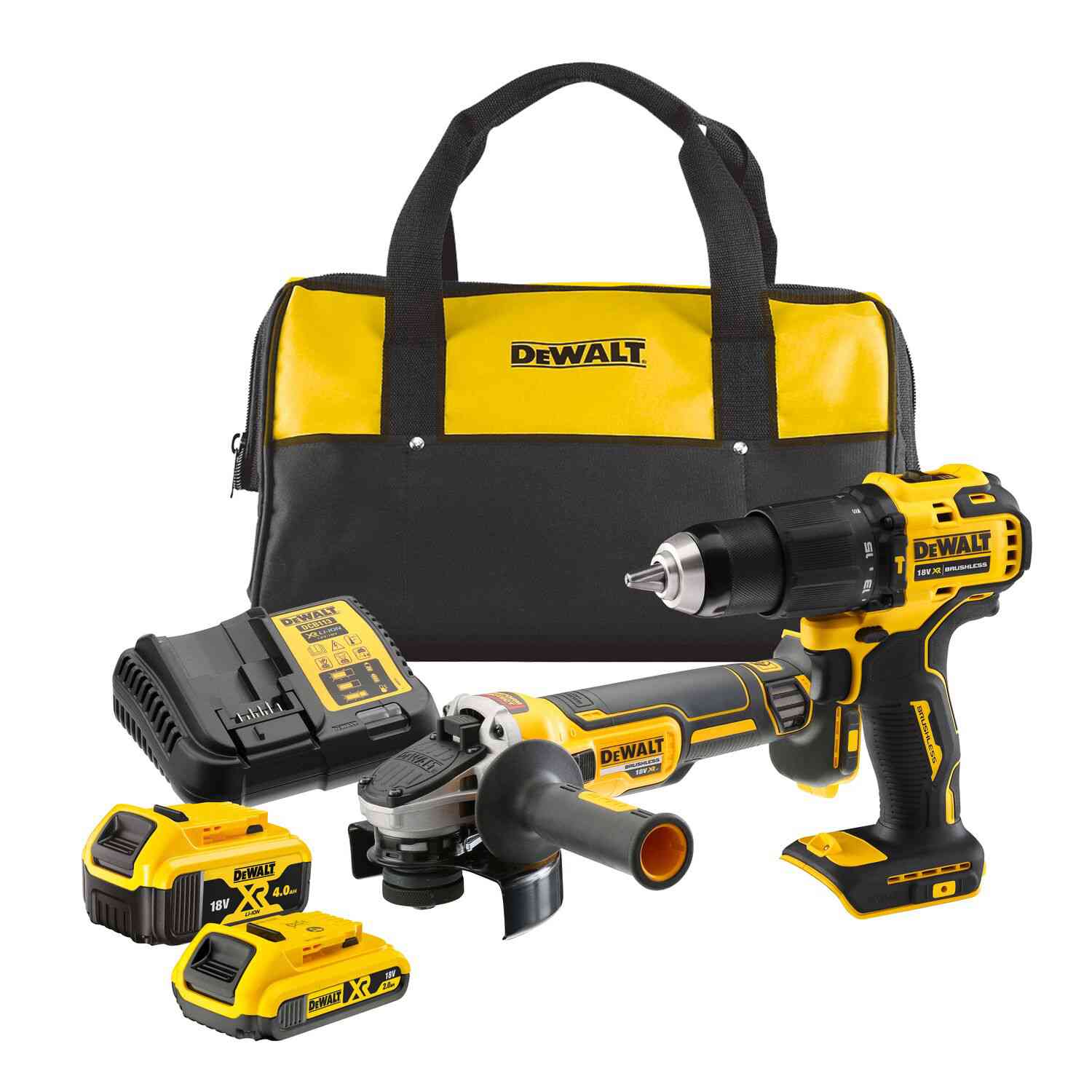 1,0 PZ Di DEWALT KIT TRAPANO 18V 2Ah+SMERIGLIATR. 18V 4Ah DC