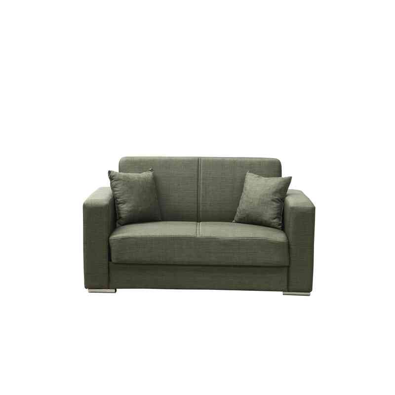 divano 2 posti funzione clic clac Futuro, seduta con molle bonnel, tessuto colore mina 19 verde oliva, piedi in plastica cromati dimensioni divano cm 159x84x82
