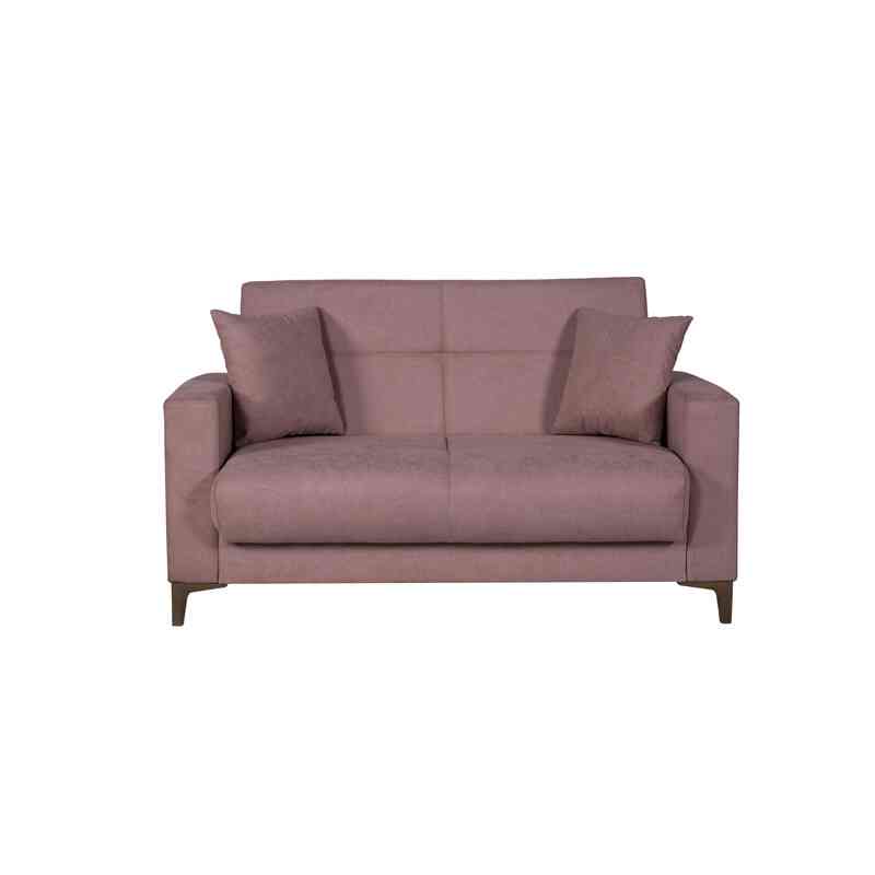 Divano 2 posti cm 152x87x90 con storage, 2 cuscini, con braccioli, con cassettone porta oggetti, imbottitura a molle e storage in MDF retro finito. Colore viola