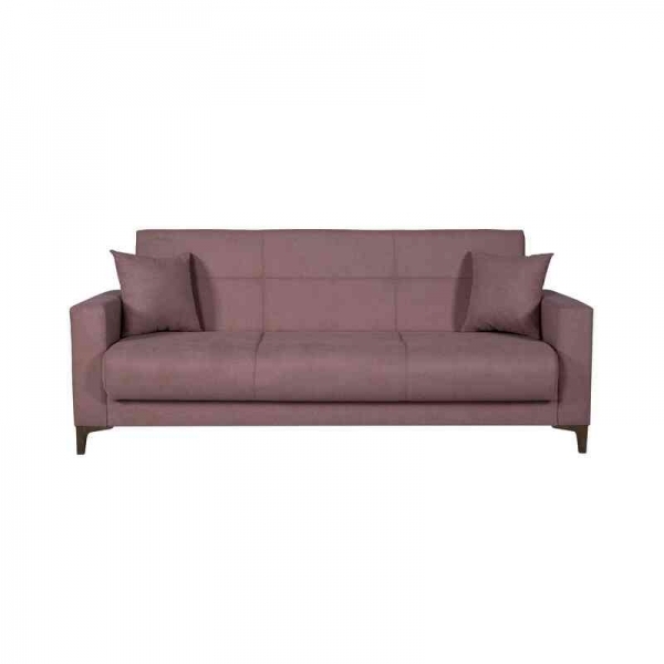 Divano letto 3 posti cm 212x87x90 con storage, 2 cuscini, con braccioli, trasformabile a letto cm 113x182 con imbottitura a molle e storage in MDF porta oggetti retro finito. Colore viola