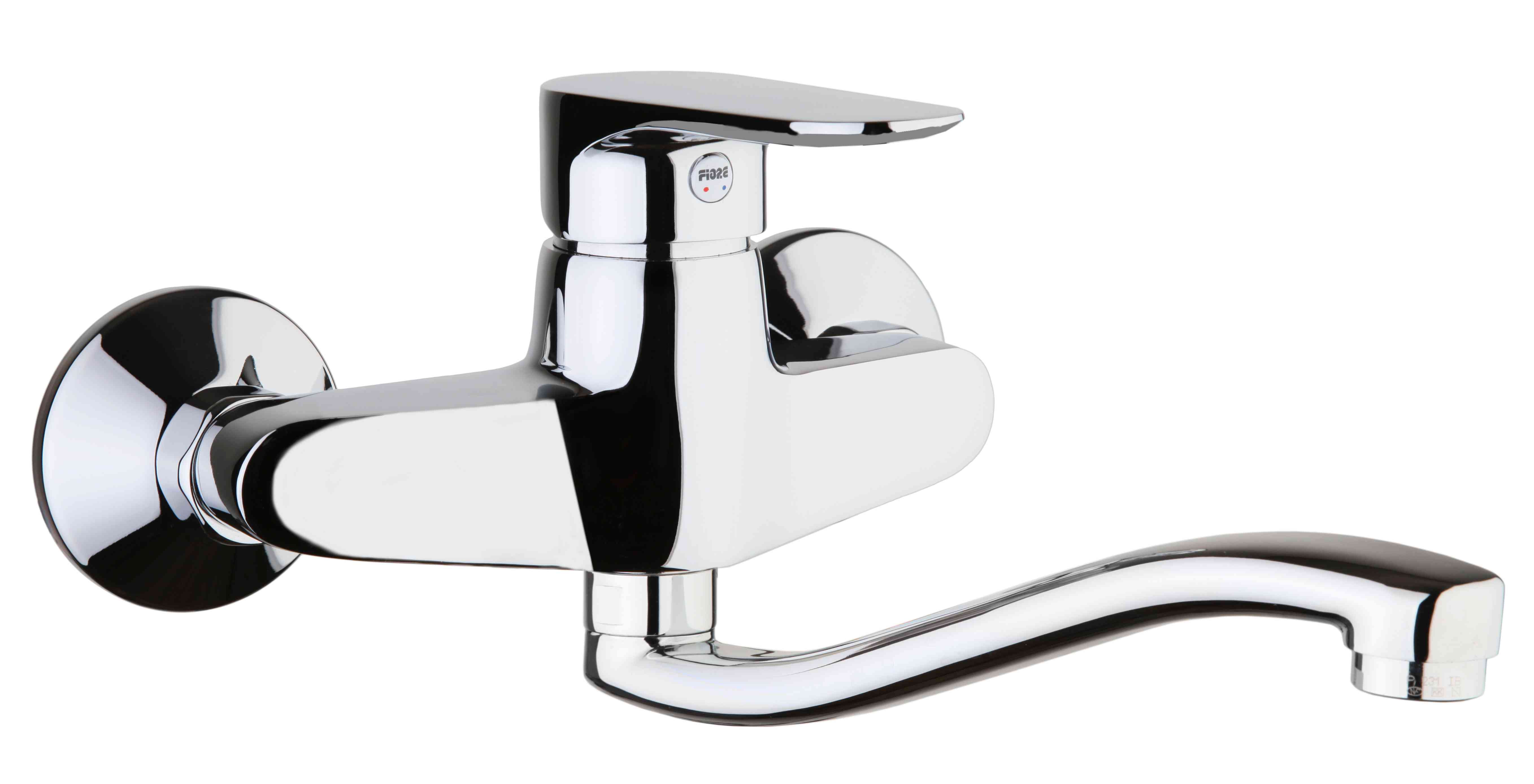 Serie KEVON in ottone cromato. Monocomando. Miscelatore per lavello. Attacco a muro Cartuccia