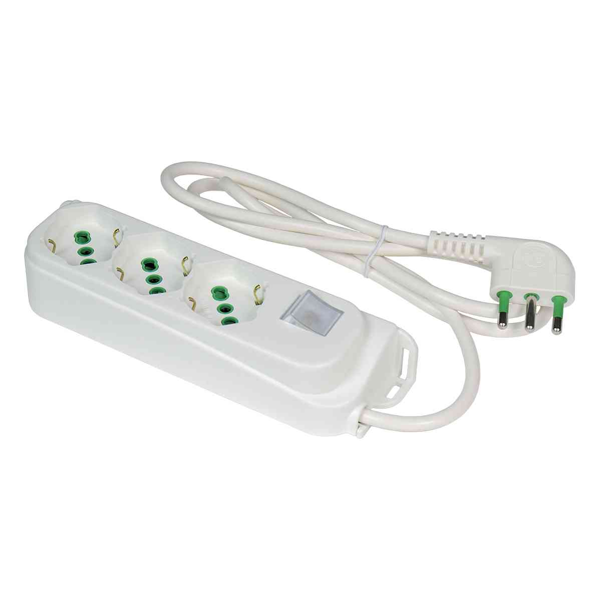 a norme di sicurezza CEI. Spina a squadra 2P + T 16A Sezione cavo 3x1 mm2 Lunghezza cavo 1,5 m Art. 47.460 3 prese schuko/bipasso 2P+T Interruttore luminoso.