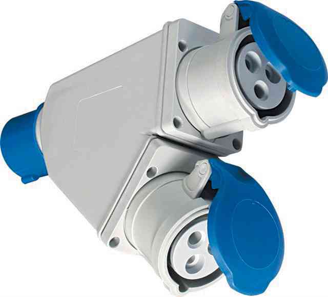 Art. 73.105 in materiale termoplastico autoestinguente. Grado di protezione IP 44. Costruite nel rispetto delle norme vigenti adattatore doppio da 16A CEE a 2 prese 16A CEE Tensione 220 V