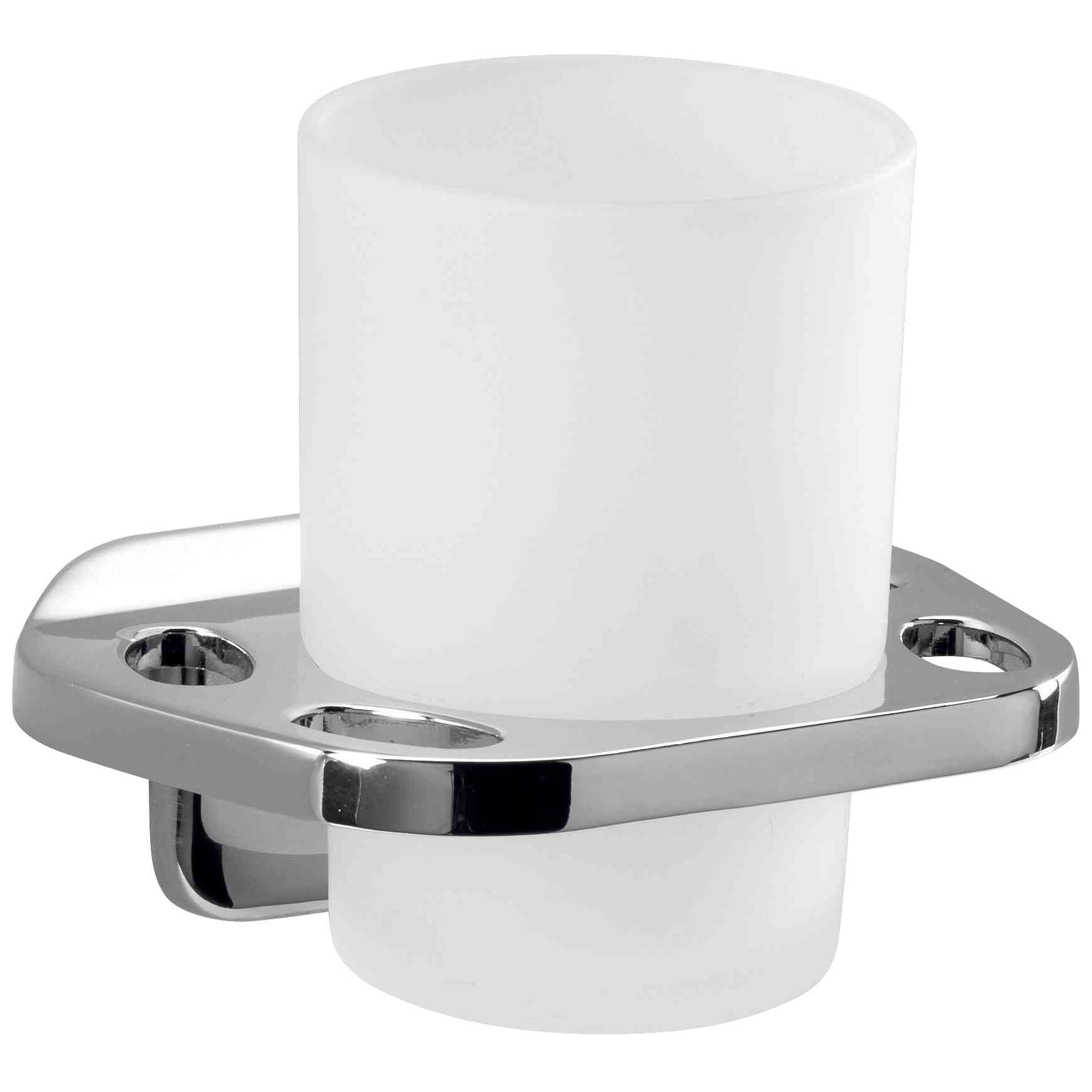 in alluminio anodizzato e cromall, contenitori in vetro satinato. Art. KD10 portaspazzolini. Dimensioni 11,7 x 8,7 x 10,3 cm