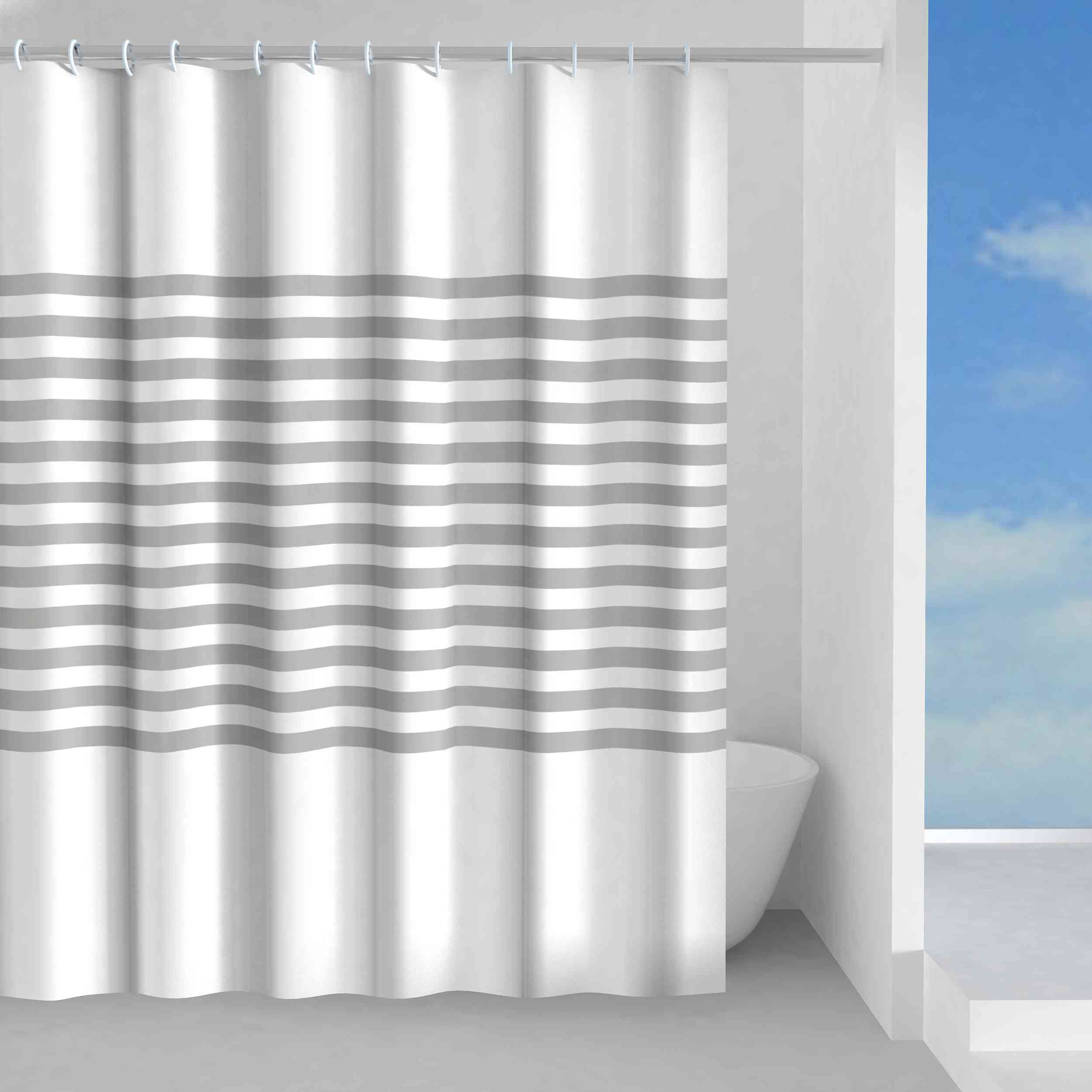 realizzata in poliestere. Completa di anelli. L'orlo inferiore contiene un filo di polipropilene per mantenere la tenda sempre tesa. Dimensioni 180 x 200 cm. Colore grigio. Disegno parallele.