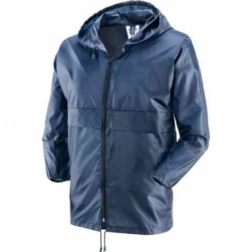 tessuto 100% nylon. Cappuccio fisso. Chiusura con cerniera. 1 tasca laterale con cerniera. Ripiegabile all'interno della sua stessa tasca, con fibbia per aggancio in vita. Colore blu. Taglia XL