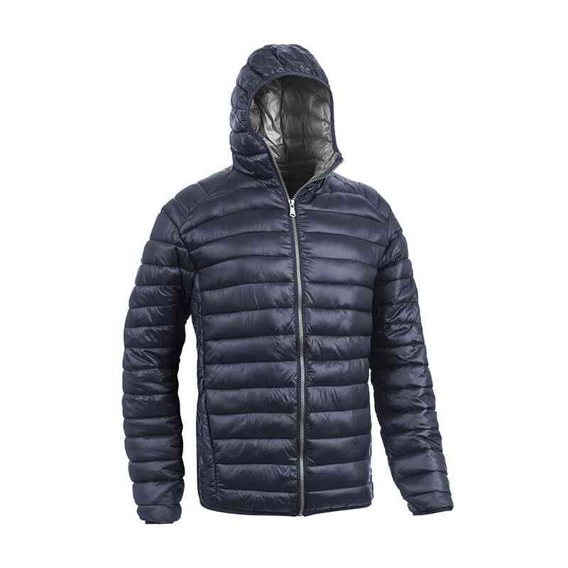 Mod. Trade, composizione 100 nylon. Peso 140 g/m2. Chiusura centrale con cerniera a vista, 2 tasche laterali con cerniera. Elastico in vita e ai polsi. Slim fit. Fornito con piccola sacca per contenere il capo. Colore blu navy. Taglia XXL
