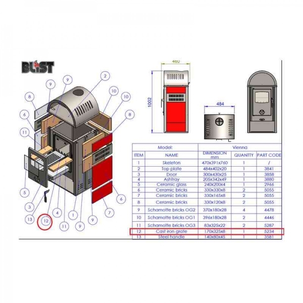 1,0 PZ Di R GRIGLIA 5234 X STUFA LEGNA 8 KW VIENNA BEIGE