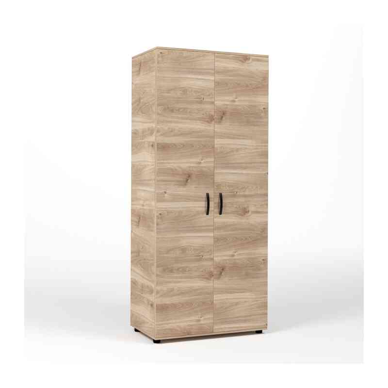 armadio due ante. Allinterno 3 ripiani. Maniglie in metallo, piedini regolabili. Dimensioni 80 x 52 x h 205 cm Colore rovere plat.