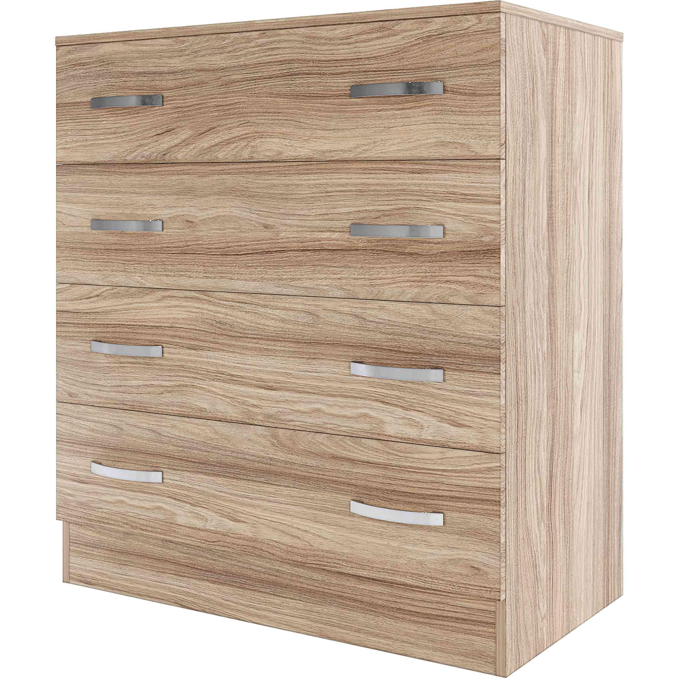cassettiera salvaspazio a 4 cassetti e 8 maniglie. Facile da montare e da pulire. Dimensioni 80 x 45 x h 90 cm. Colore rovere