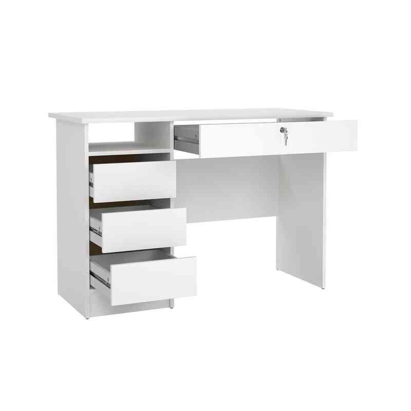 Scrivania con 3 comodi cassetti laterali e 1 cassetto centrale con serraturra. Colore bianco. Dimensioni 109,3x48,5x75,6 cm. Peso 25,9 kg.