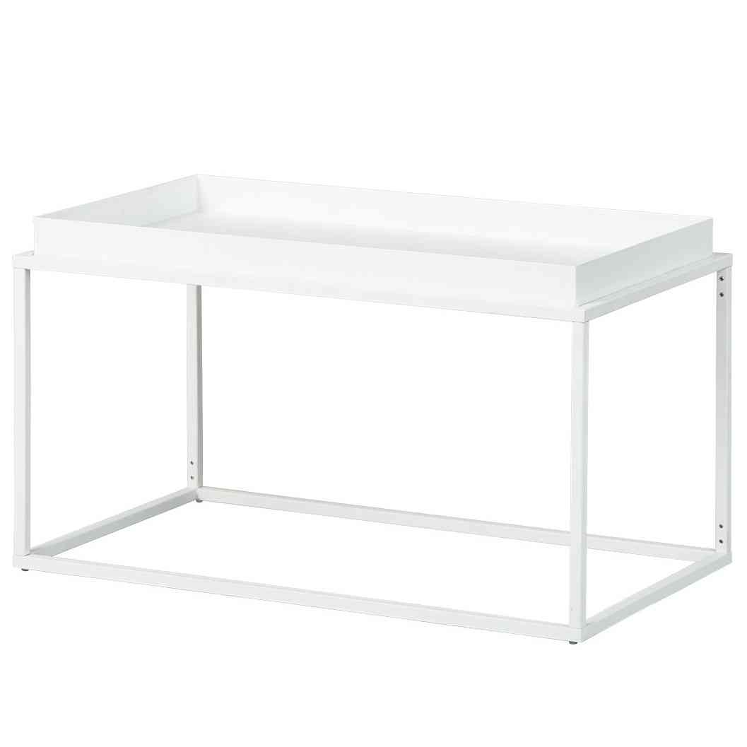 Moderno tavolino da salotto impilabile con ripiano a forma di vasca dal design quadrato e telaio in metallo colore bianco. Da montare. Dimensioni 80 x 45 x h 45 cm.