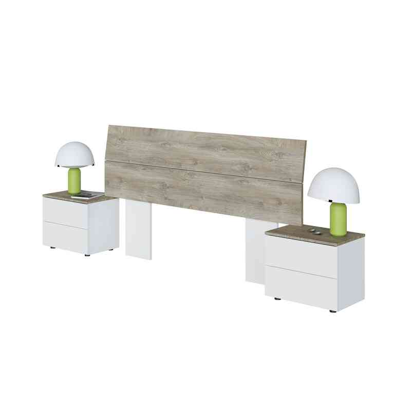 Pannello truciolare melaminico. Testiera per letti da 160cm/150cm e 135cm, con due comodinicon due cassetti. Spessore 15mm Schienale Pannello in fibra di densit media. (MDF/DM). Spessore 3mm Bordi P.V.C. Spessore 0,6mm y melaminici. Cassetti (MDF/DM). Spessore lati 12mm e fondo 3mm Rivestimento in tessuto.
