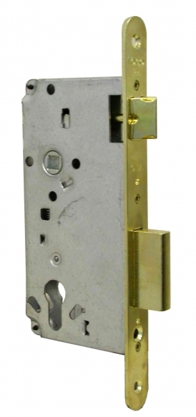 Art. 5C631 da infilare catenaccio a 2 mandate e scrocco. Bordo tondo. Frontale e contropiastra ottonati. Entrata 70 mm