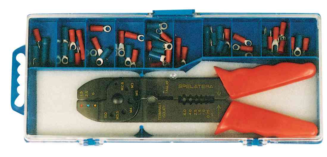 per elettricisti. Manici isolati in resina termplastica. Confezione in astuccio di plastica con 30 capicorda isolati. Lunghezza 200 mm