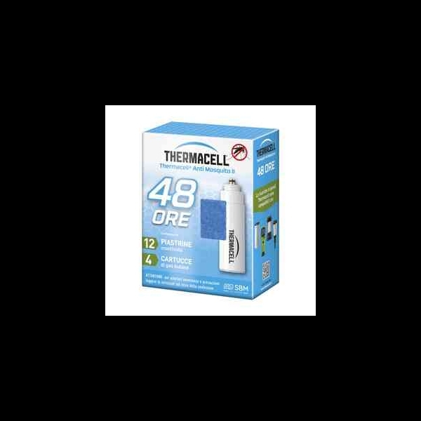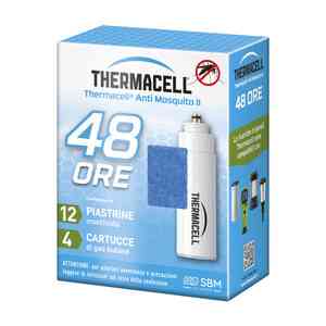 repellente antizanzare 48 ore per MINI HALO. Inodore. La confezione contiene 4 cartucce di gas butano (durata 12 ore luna) + 12 piastrine insetticidi repellenti (durata 4 ore luna). Dispositivo Thermacell non presente allinterno della confezione.