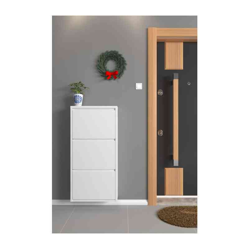 Scarpiera in metallo cm 50x15x104 3 ante ribalta in colore bianco opaco