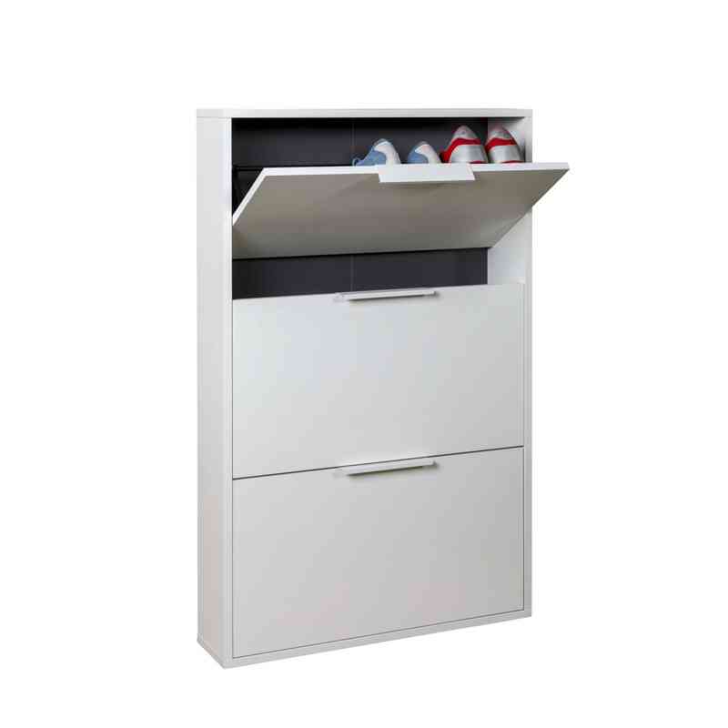 Scarpiera a 3 ribalte con maniglie in metallo. Imballo Web. Dimensioni 65,0x15,0xh105,5 cm. Colore Bianco Top Matt