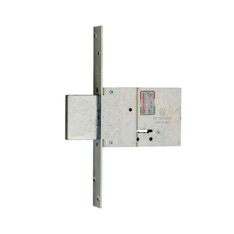 Serratura infilare a doppia mappa di altissima sicurezza per serramenti e cancelletti, chiusure laterali. Dotata di brevetti contro la manipolazione. Entrata 60 mm, lunghezza 1120 mm, 1 punto di chiusura, 2 mandate. Corsa catenaccio 40 mm. Dotazione 1 contropiastra CP2001XZB e 2 piastrine 4901XZB. Dimensioni 25x220 mm. Peso 775 g.
