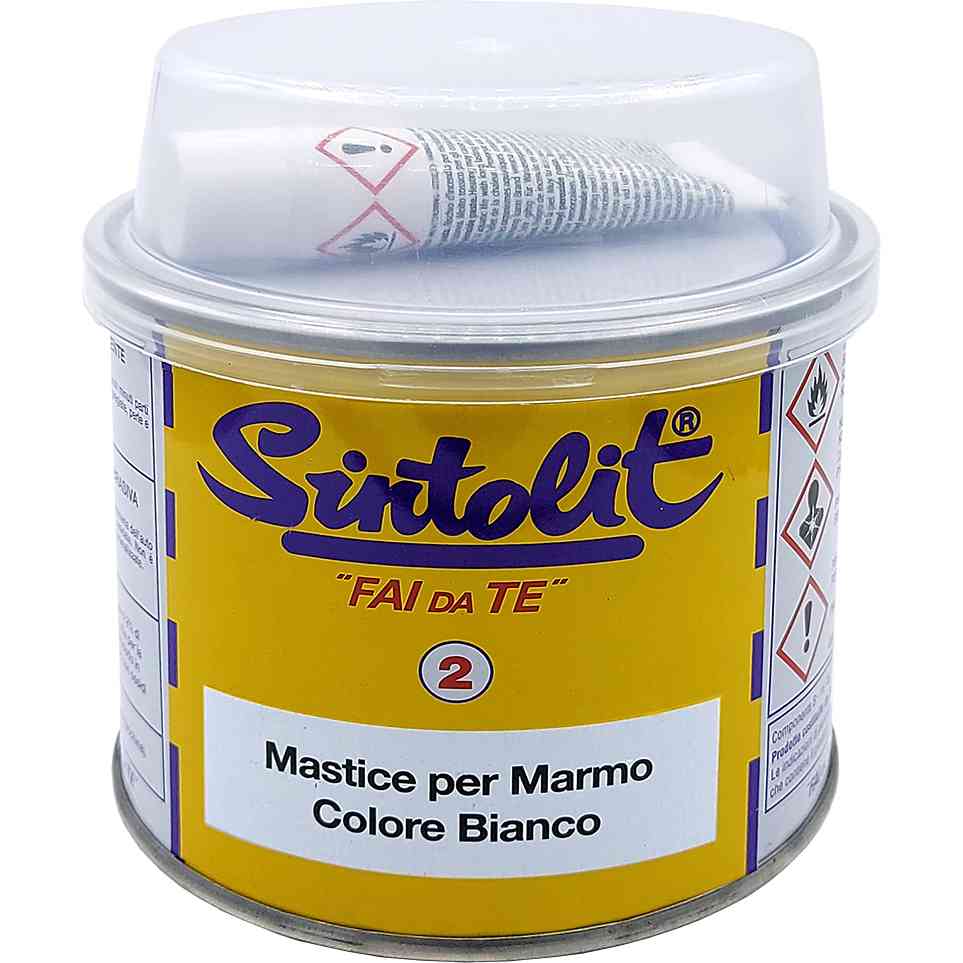 mastice-stucco solido per marmo. Bicomponente poliestere. Adatto anche per applicazioni in posizione verticale. Confezione 375 ml Colore bianco