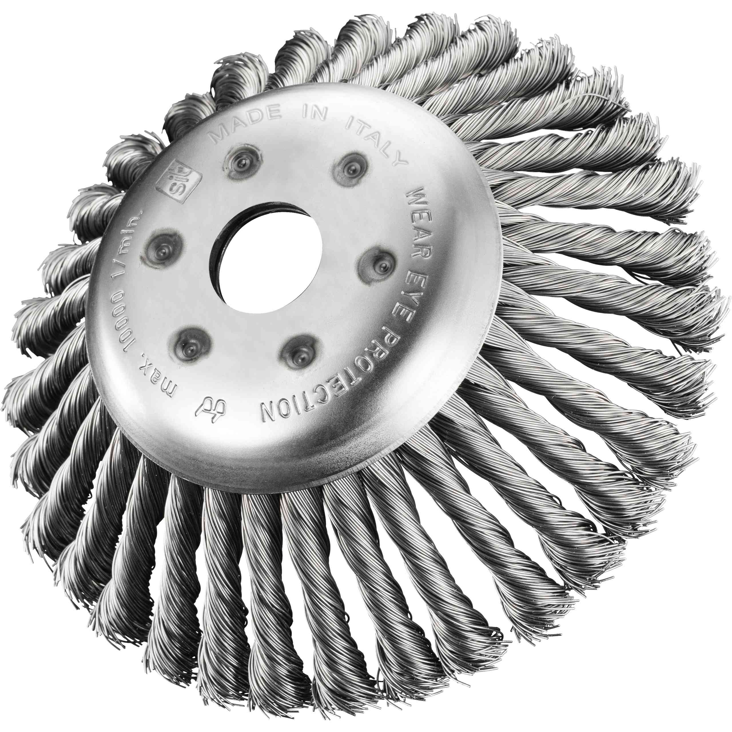 Spazzola conica per decespugliatore, fili in acciaio, diametro mm. 170, foro 25,4 mm., incluso kit adattatori in acciaio fino a foro 20mm-3/4
