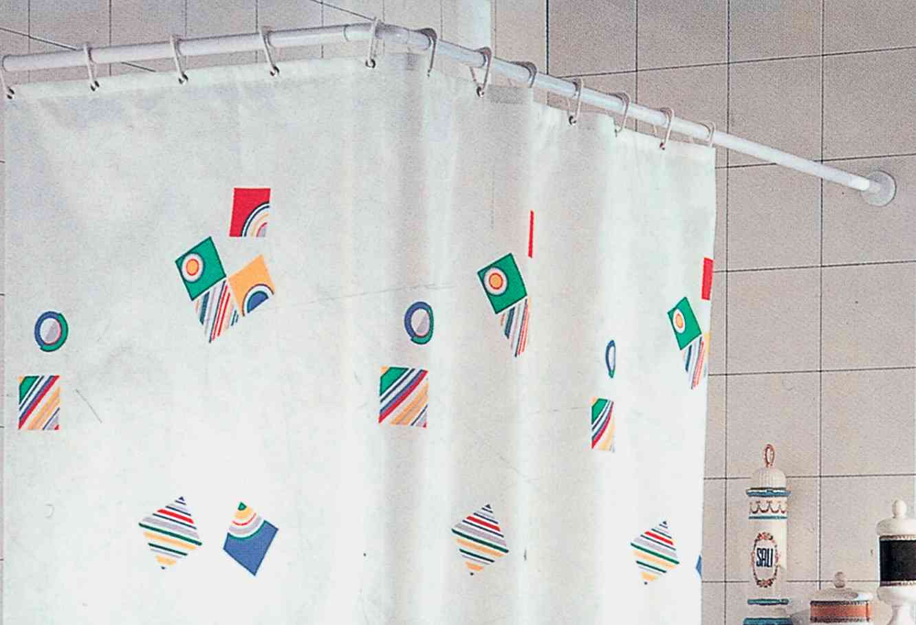 di supporto reggi tenda doccia a forma angolare per vasca, realizzato in alluminio verniciato bianco. Tubo