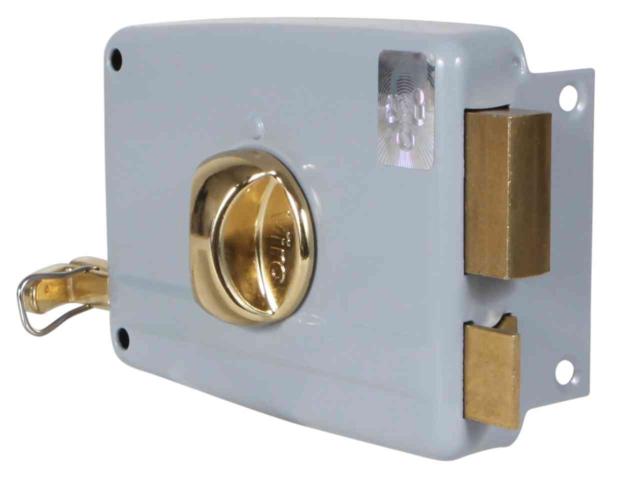 Serie 7600 catenaccio a 2 mandate e scrocco. Pomolo interno e cilindro esterno staccato. Mano Dx Entrata 60 mm Scatola 120x92 mm