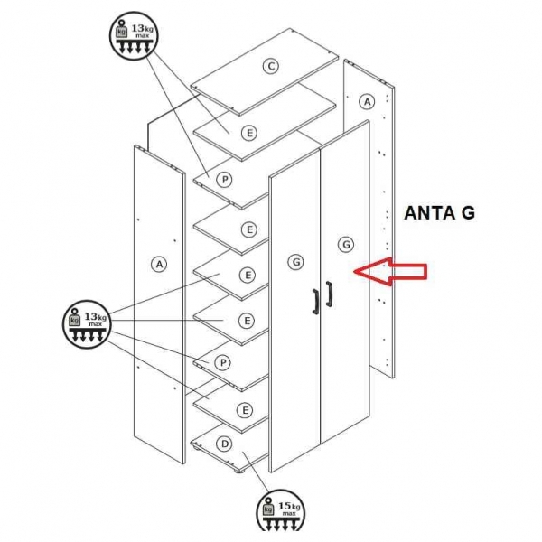 1,0 PZ Di ZZ-ANTA G X KIT ARMADIO/SCARP. 2A CM.70X36X181H RO