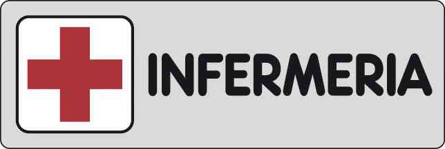 cartello Infermeria. Adesivo bianco. Dimensioni 150 x 50 mm.