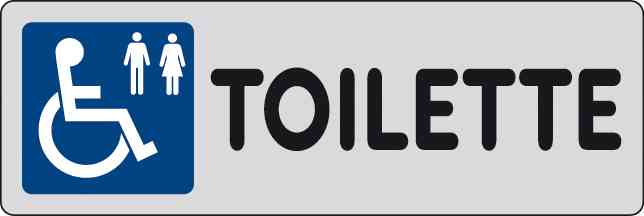 cartello Toilette (disabili). Adesivo bianco. Dimensioni 150 x 50 mm.