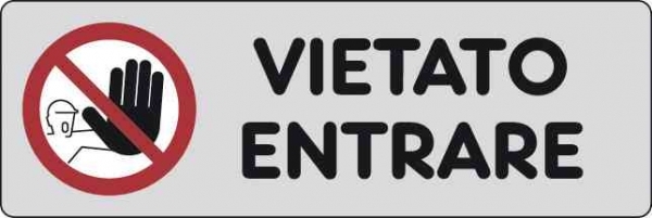 cartello Vietato entrare. Adesivo bianco. Dimensioni 150 x 50 mm.