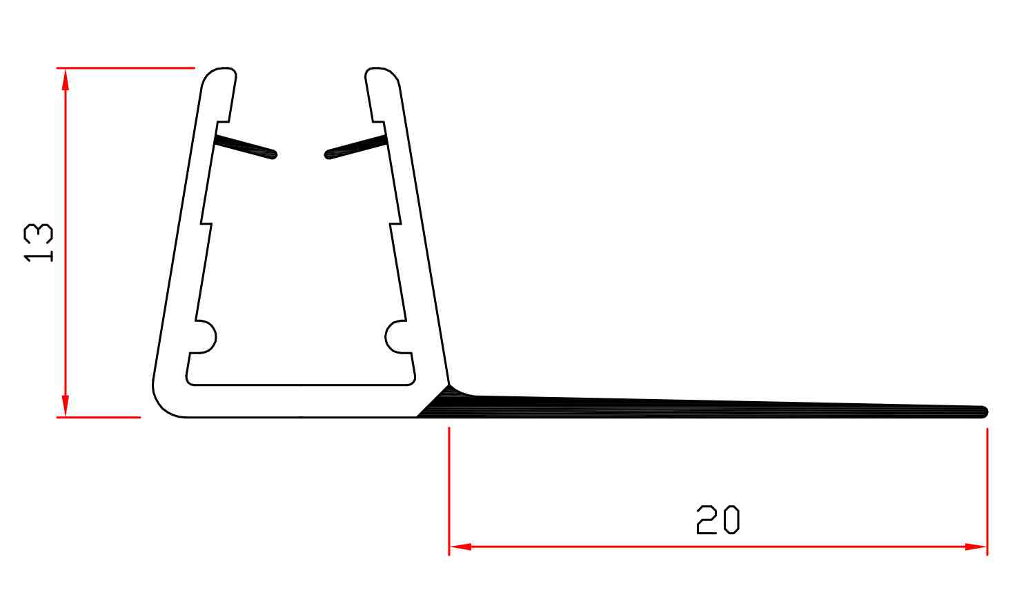 Art. 404/20 profilo gocciolatoio in PVC coestruso trasparente. Per vetri spessore 6
