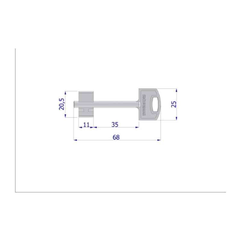 Chiave 68x20,5x11,4 mm mm per serrature ad infilare, per persiane, per serrande e garage e casseforti 6 leve nelle versioni non SECURMAP.