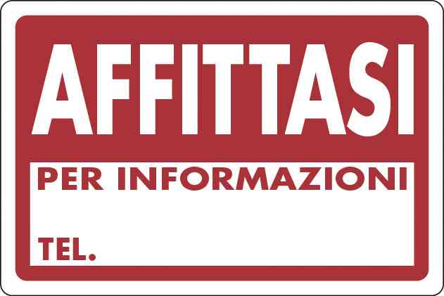 cartello Affittasi, Per informazioni Tel. Supporto in PVC bianco, scritta rossa. Dimensioni 30 x 20 cm.