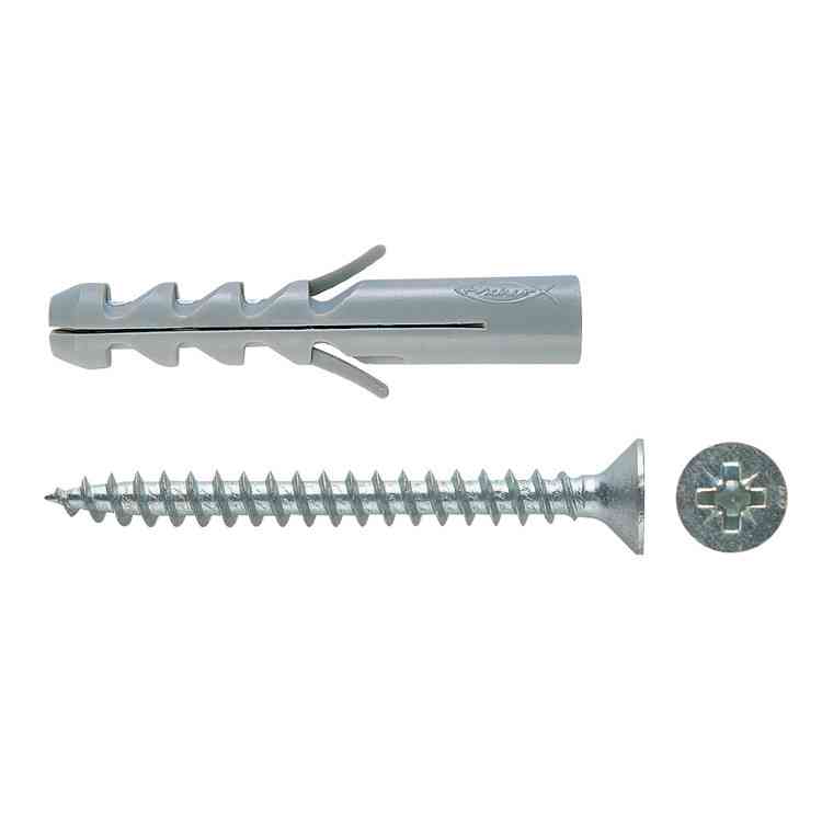 Mod. S5V in nylon, a 2 settori espandenti. Con alette antirotazione. Completi di vite testa svasata piana, impronta PZ Con vite diametro per lunghezza mm 5x25