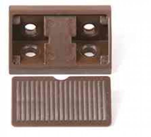 giunzione ad angolo in plastica per mobili. Dimensioni 43 x 20 mm. Con tappo di copertura. Colore marrone