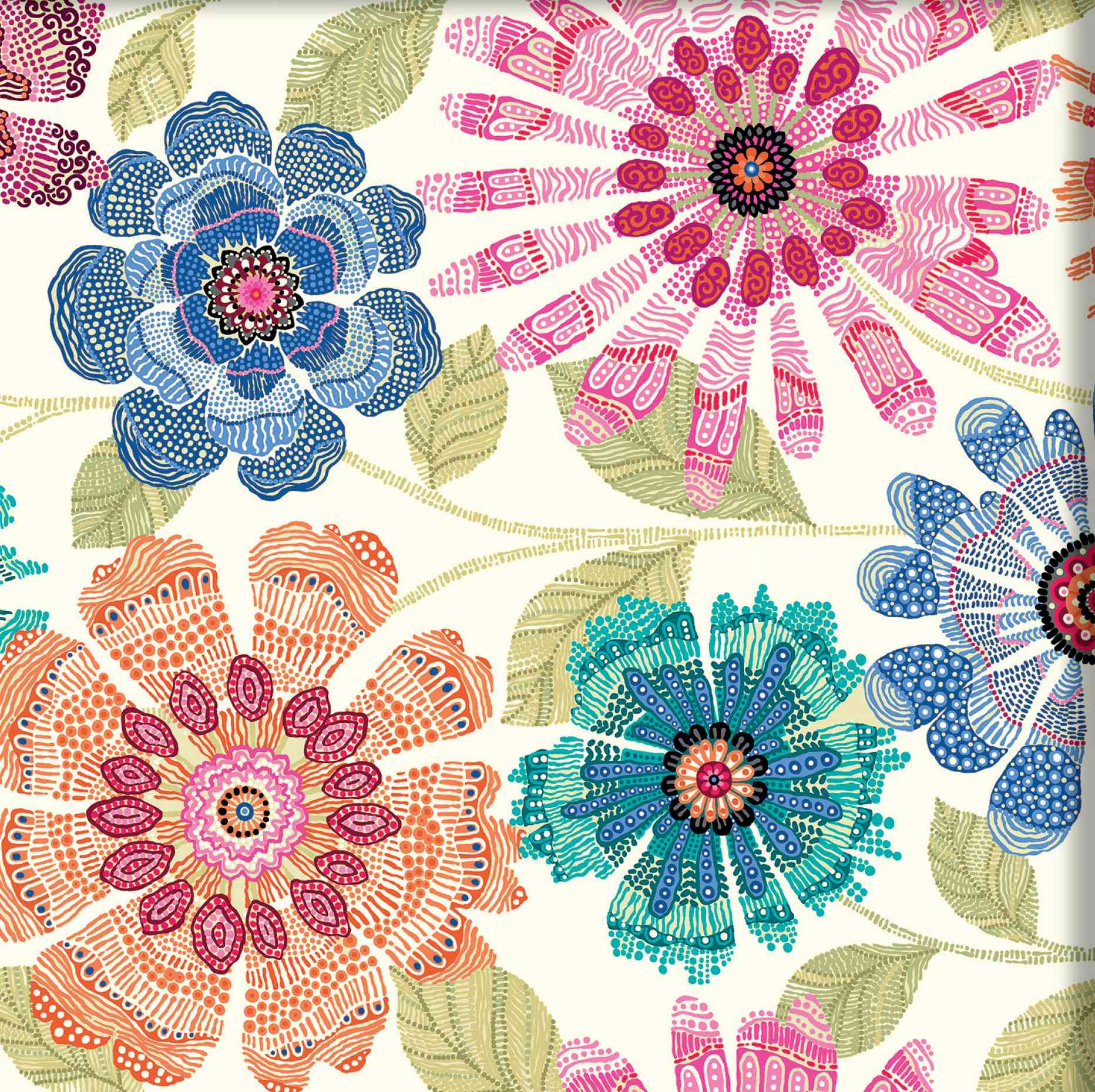 PVC stampato accoppiato a tessuto di polipropilene. Altezza 140 cm. Fantasia Moderns fiori. Rotolo da 20 m.