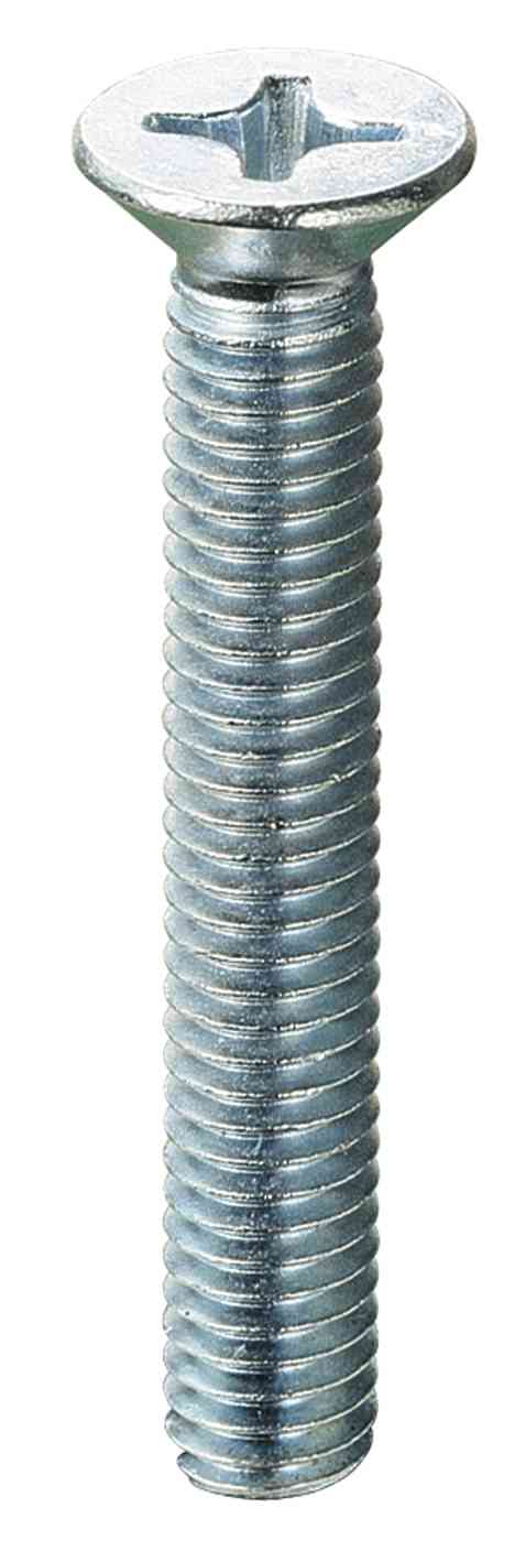 in acciaio zincato classe 4.8 UNI 7688 - DIN 965. Passo Grosso. Testa svasata piana. Diametro 6 mm Lunghezza 25 mm