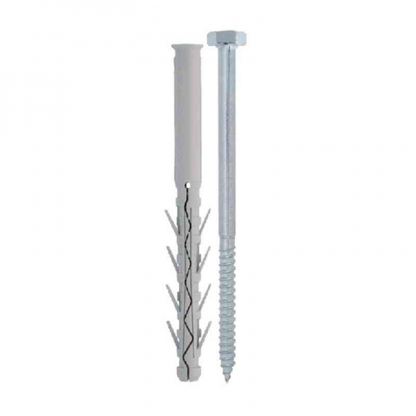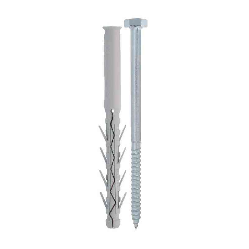 prolungato in nylon ad elevata espansione con 4 alette. Completo di vite testa esagonale. Diametro 12 mm. Lunghezza 240 mm.