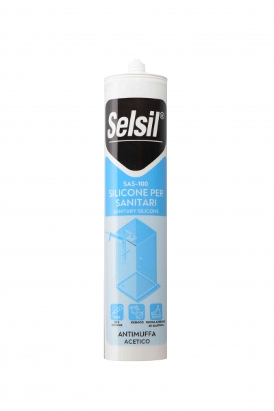 Sigillante a polimerizzazione acetica per la sigillatura di sanitari. Resistente a funghi e muffe. Eccellente elasticit