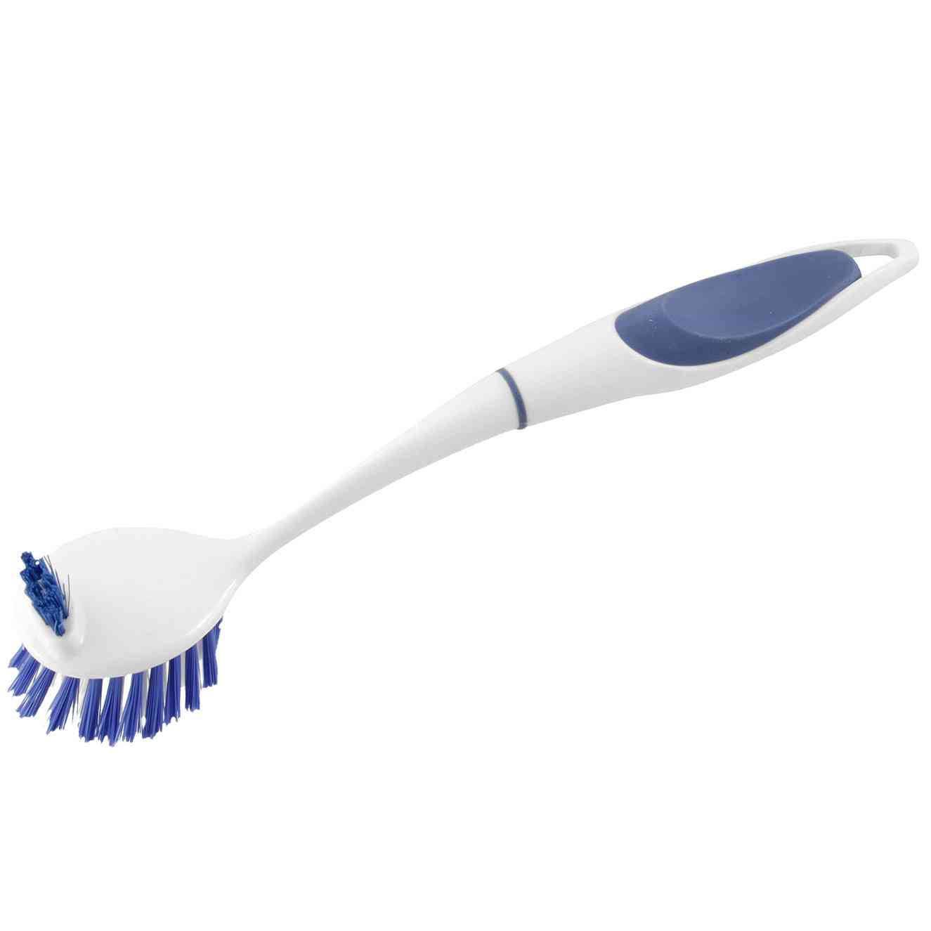 Art. 63863 Spazzola lava piatti e stoviglie in plastica con manico antiscivolo. Dimensioni 279 x 38 x 51 mm. Peso 86,2 grammi. Colore bianco blu.